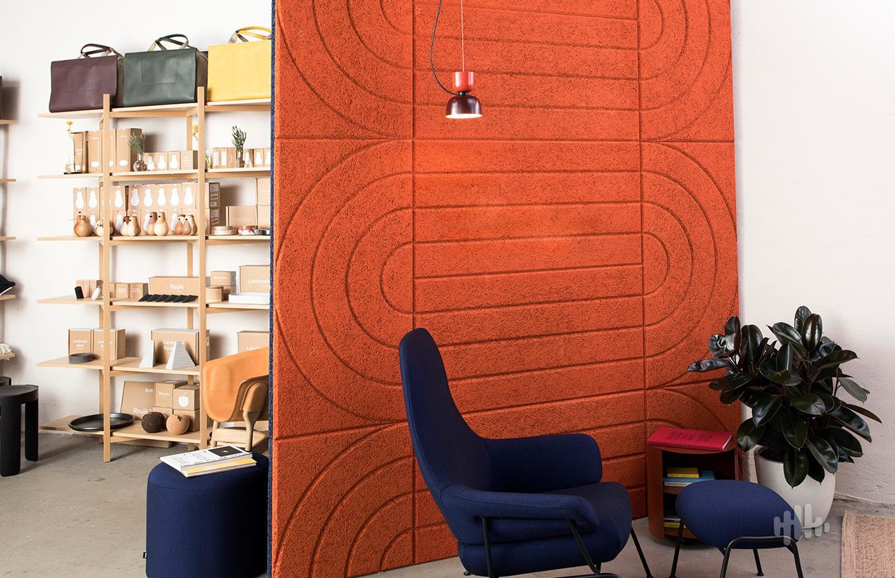 Ce panneau mural est proposé en format rectangle de 58×116 cm et avec 7 motifs uniques à combiner. Il est disponible en 20 couleurs standards et peut être personnalisé (selon NCS – env. 25 m2 minimum).