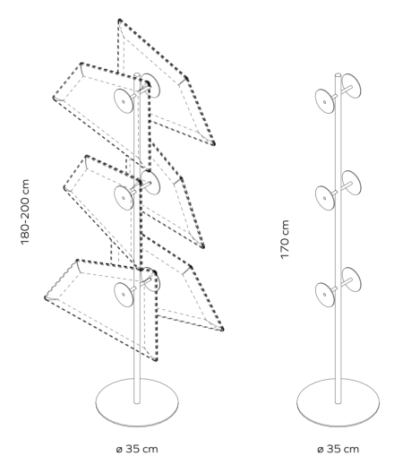 Le produit est composé de 6 panneaux FLAP à choisir parmi une palette de couleurs chaleureuses. Le pied métallique est disponible en noir ou en blanc.