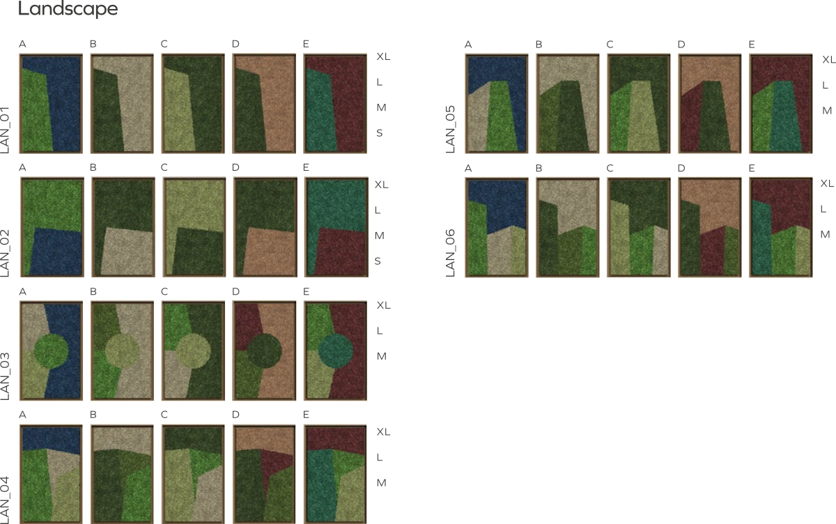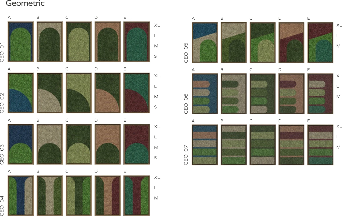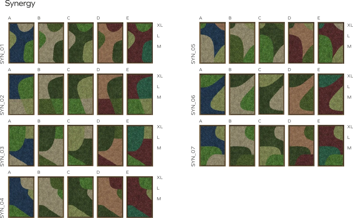 Le choix est offert parmi 4 familles de motifs (geometric, landscape, synergy, harmony) et 5 groupes de couleurs.