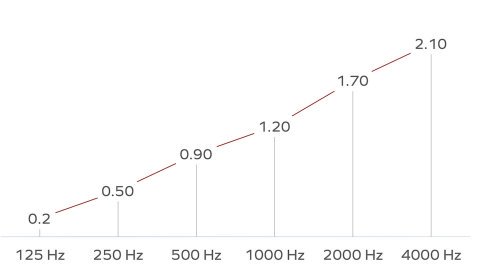 • Aire d’absorption équivalente (m2) – ISO 354 – panneau de D120 cm
