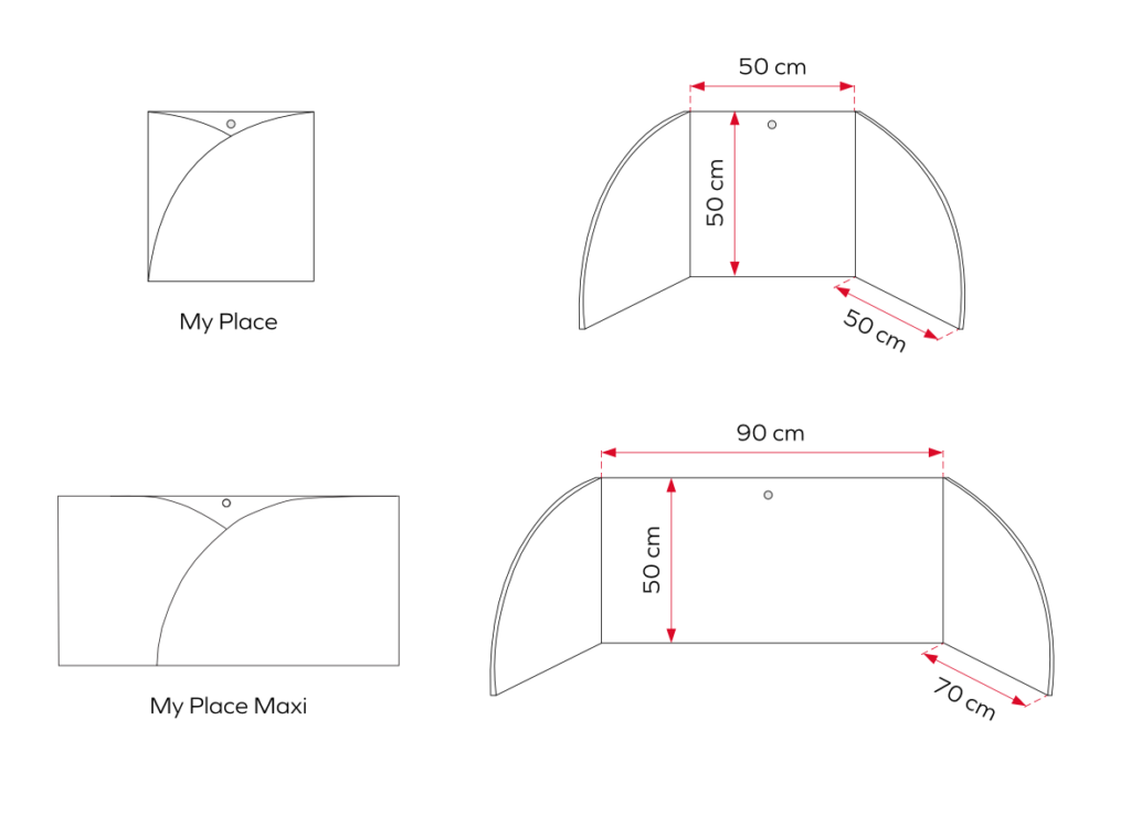 Le produit MYPLACE est disponible en deux dimensions – longueur 50 cm ou longueur 90 cm.