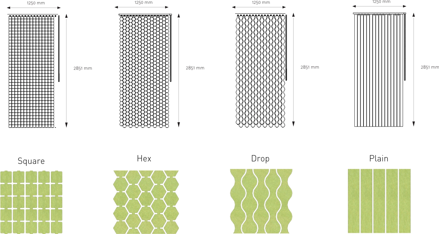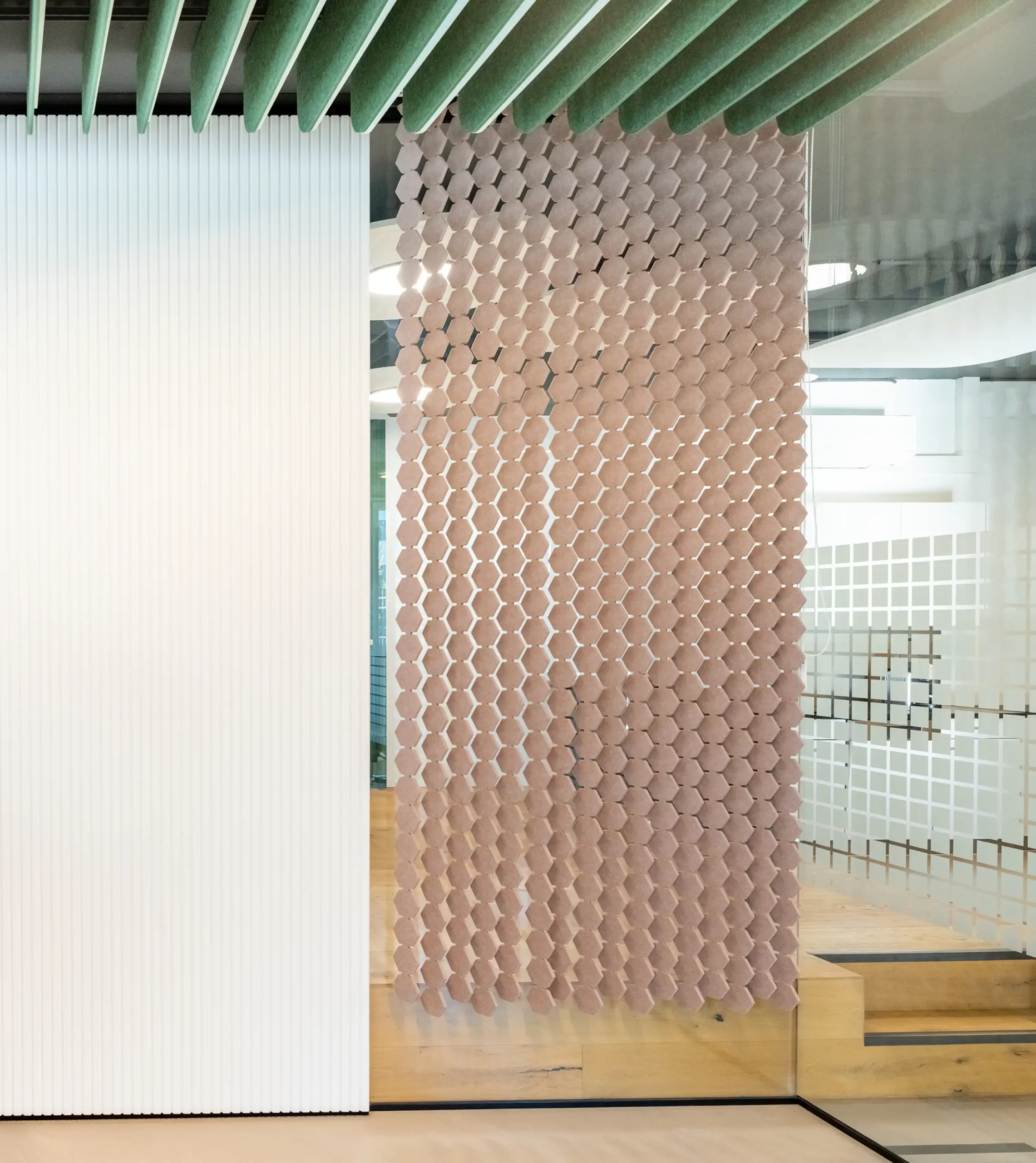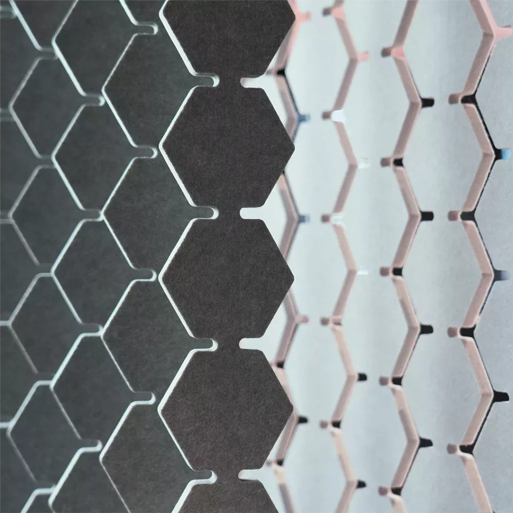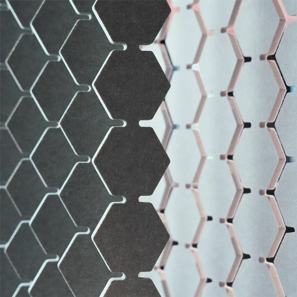 Avec ses 4 motifs : Square, Drop, Hex et Plain, la séparation acoustique PIXEL s’intègre facilement dans les bureaux, halls et zones d’accueil, et s’installe dans les parois vitrées des salles de réunion pour renforcer la confidentialité et le confort acoustique.