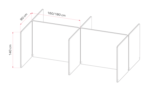 Plusieurs configurations sont possibles pour 1, 2 ou 4 personnes. La hauteur est de 140 cm.