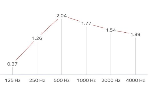 • Aire d’absorption équivalente (m2) – panneau de 120×120 cm à 2 cm du mur