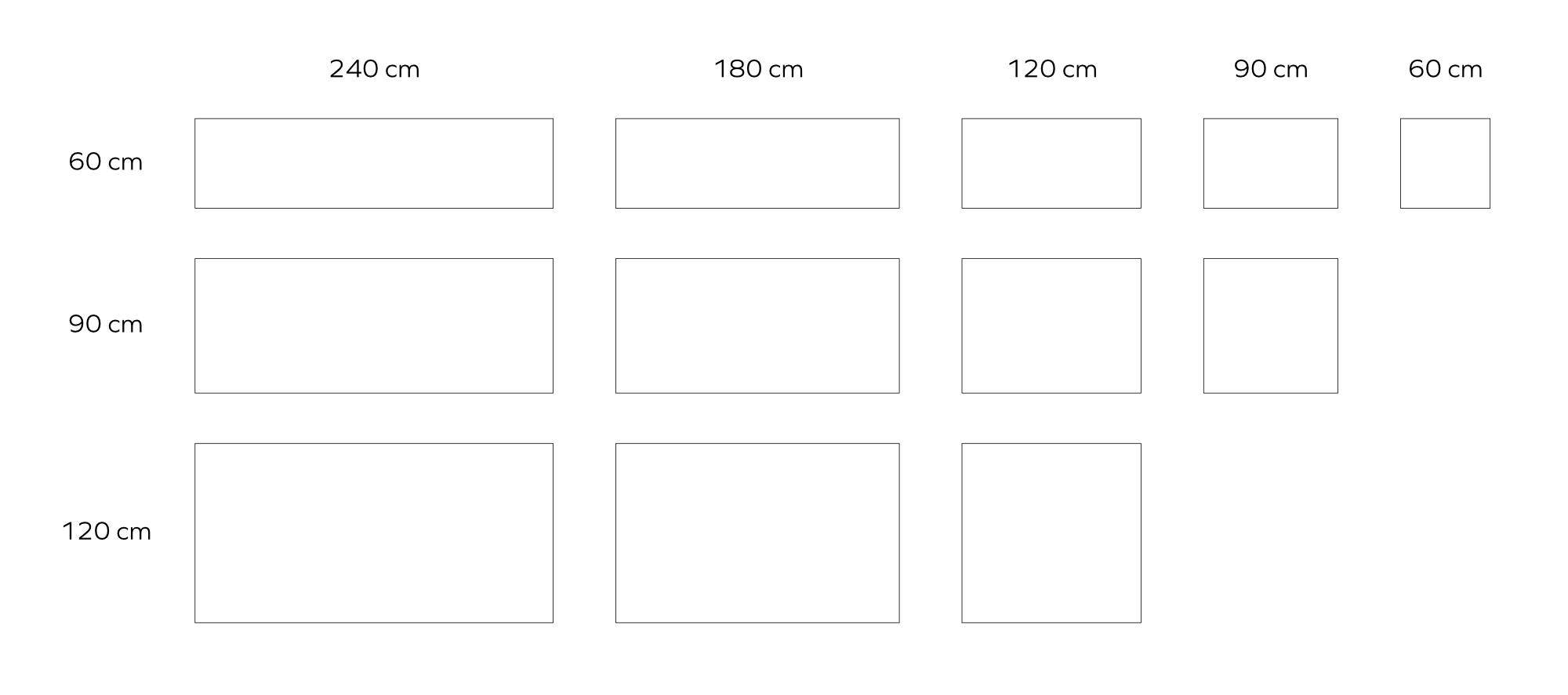 Il se fixe sur les murs avec son système de rail inclus. Il est disponible en 12 dimensions standards et il peut être fabriqué sur mesure.