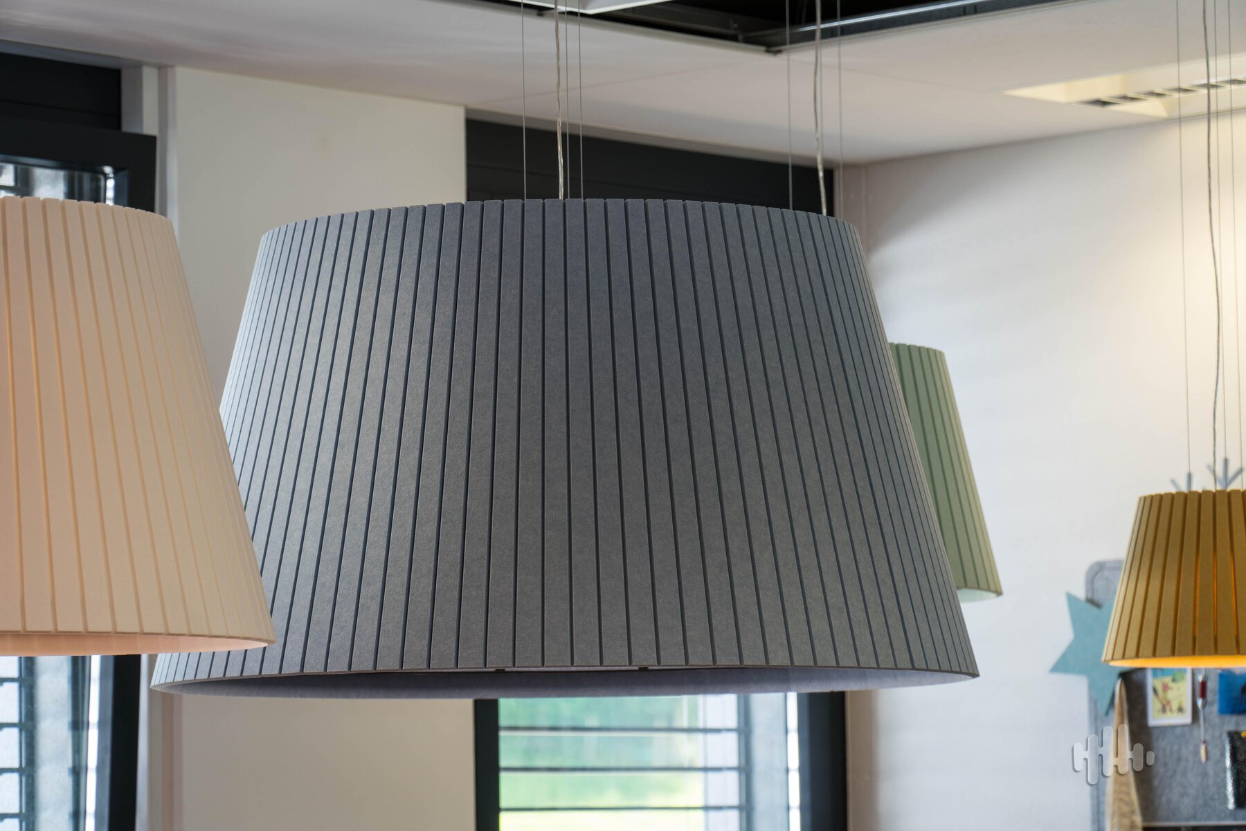 Ce luminaire acoustique est disponible en 5 tailles standards combinables. Ce produit est réalisé sur la base du matériau absorbant Archisonic (12 mm) – disponible en 36 couleurs.