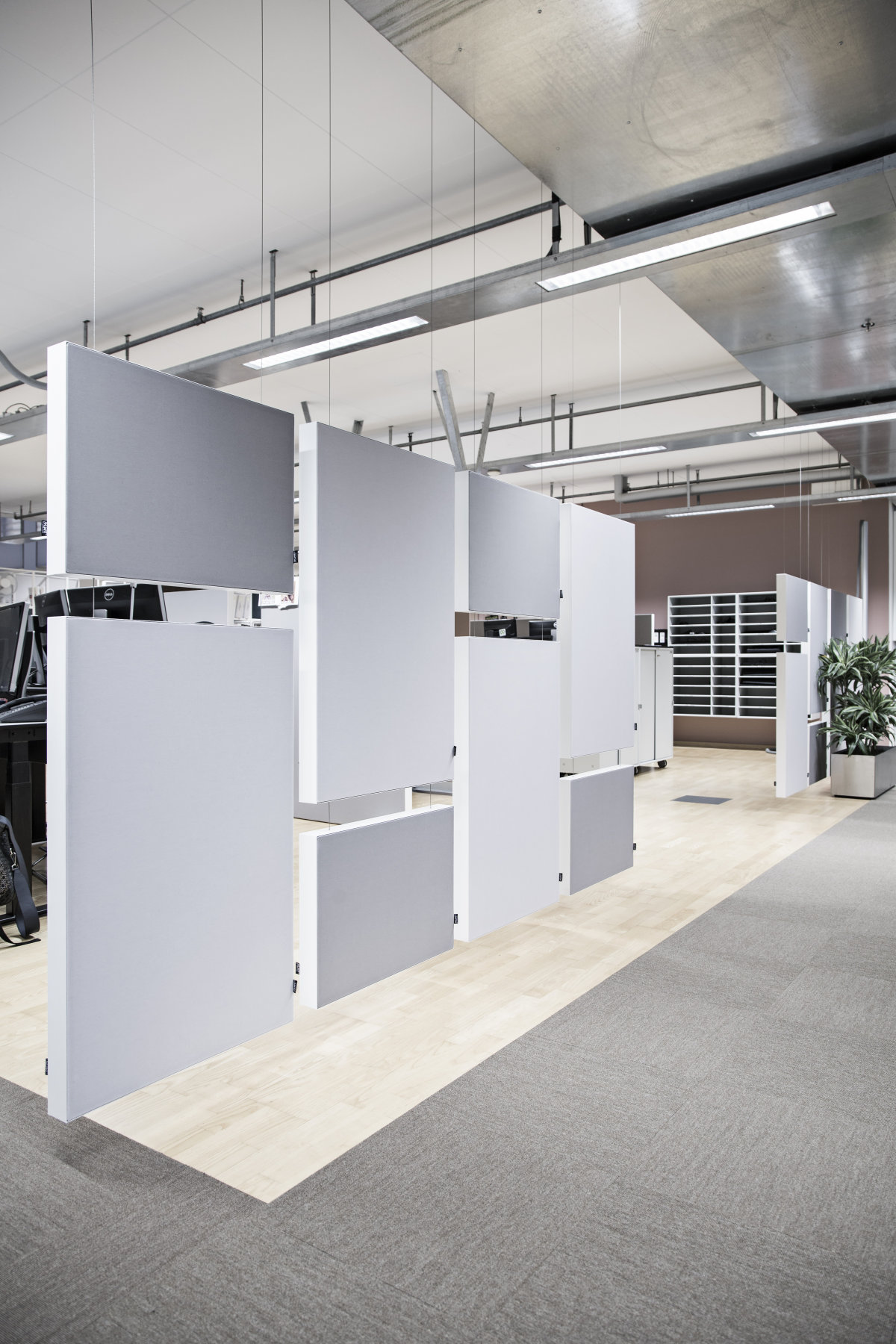Cette séparation acoustique convient pour les configurations où une séparation visuelle et acoustique est recherchée par exemple dans les bureaux paysagers, les zones d’accueil et les zones de passage ou enfin sur des parois vitrées.