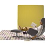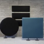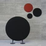 SUN OF SILENCE est une séparation acoustique mobile design issue de la gamme de panneaux acoustiques Woolbubbles.