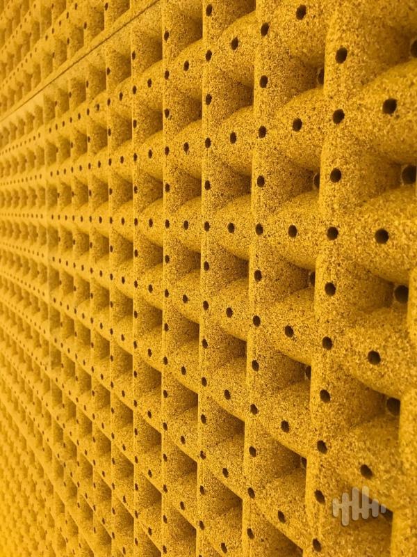 UNDERTONE est un panneau acoustique en liège de format carré (49 cm x 49 cm) conçu spécialement pour une efficacité acoustique accrue.